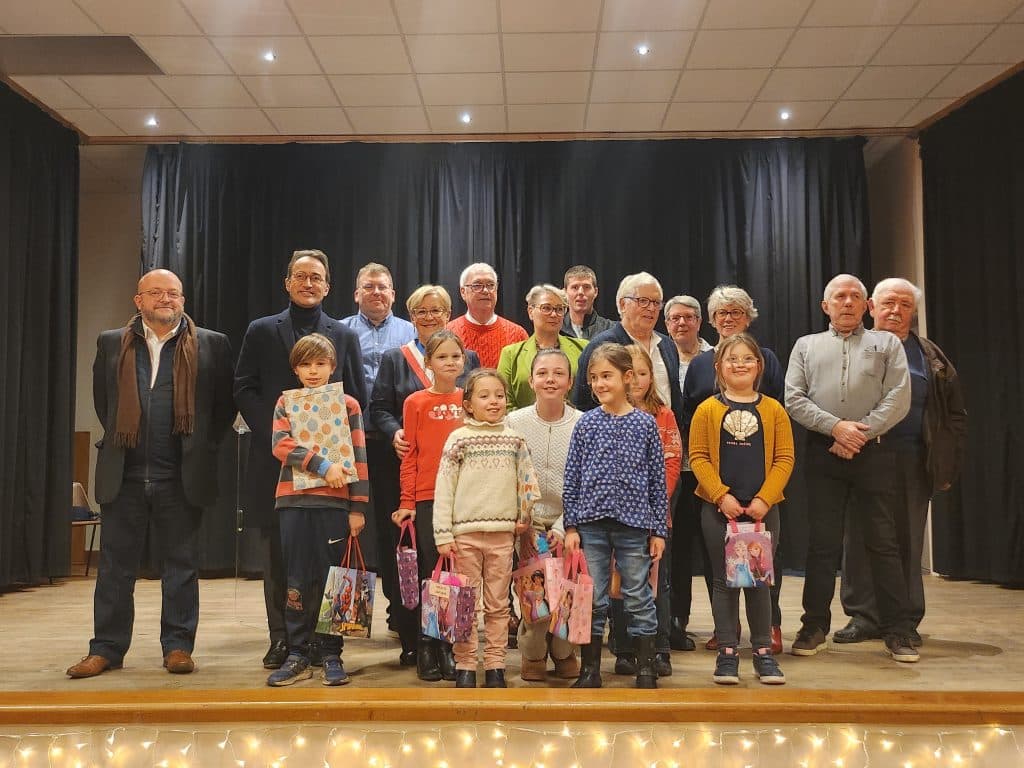 Gagnants du concours « Jeunes Artistes » organisé par la Mairie en partenariat avec l’école des Sources en présence de Madame Liliane BOURGEOIS, Maire, de son conseil municipal, de Monsieur Nicolas LEBAS, sous-Préfet des Andelys et de Monsieur Christophe CHAMBON, conseiller départemental, lors de la cérémonie des vœux 2025 du samedi 11 janvier.